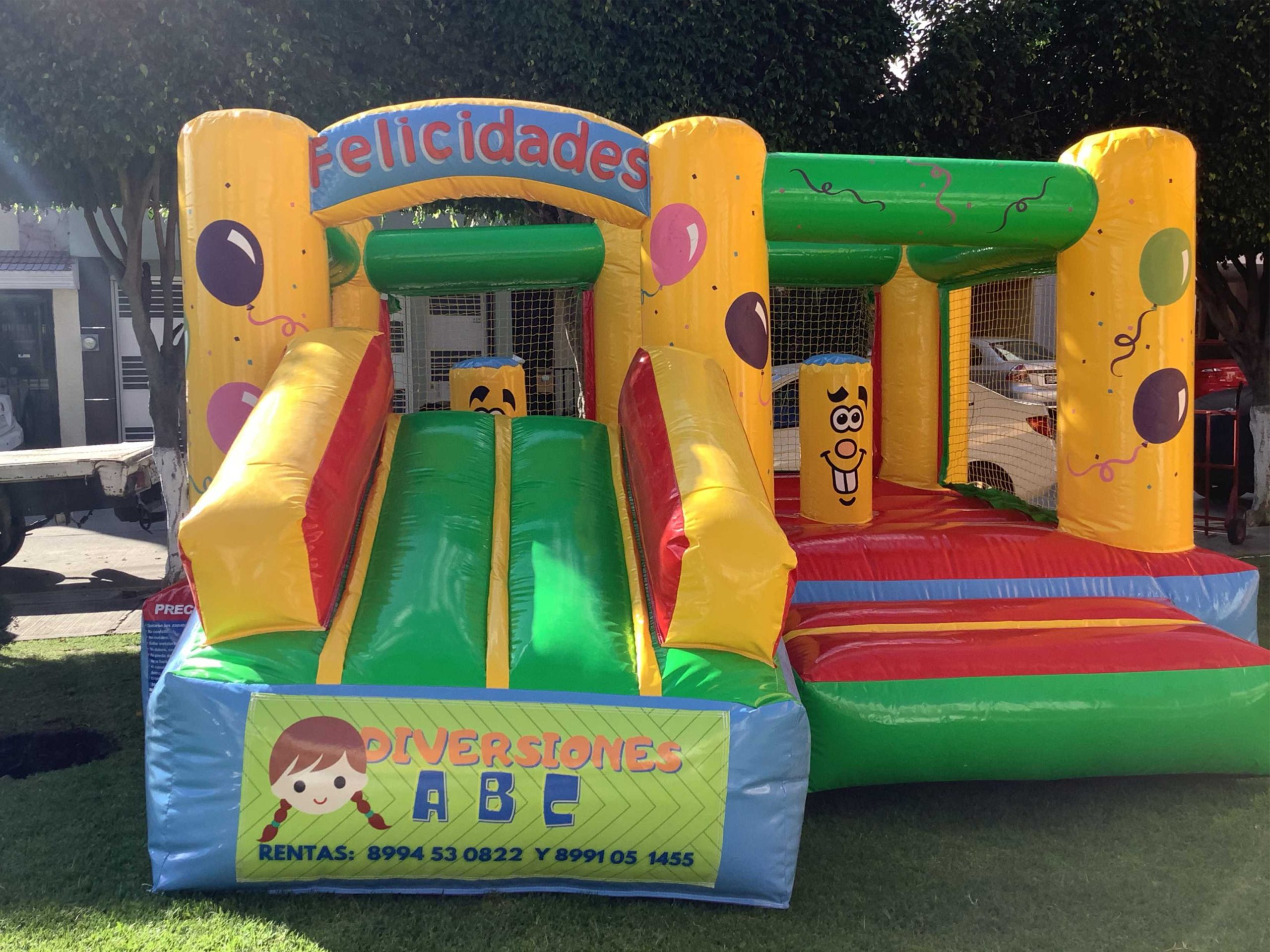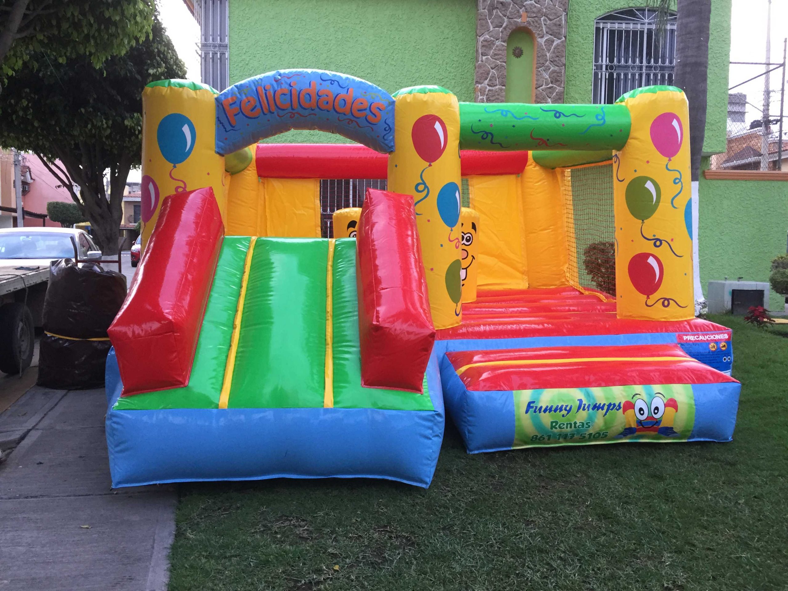 ✅ Cubo Felicidades con Rampa al Frente (4×5 m) – Diversión asegurada con su rampa integrada y amplio espacio para saltar. Un inflable imprescindible en cualquier renta.