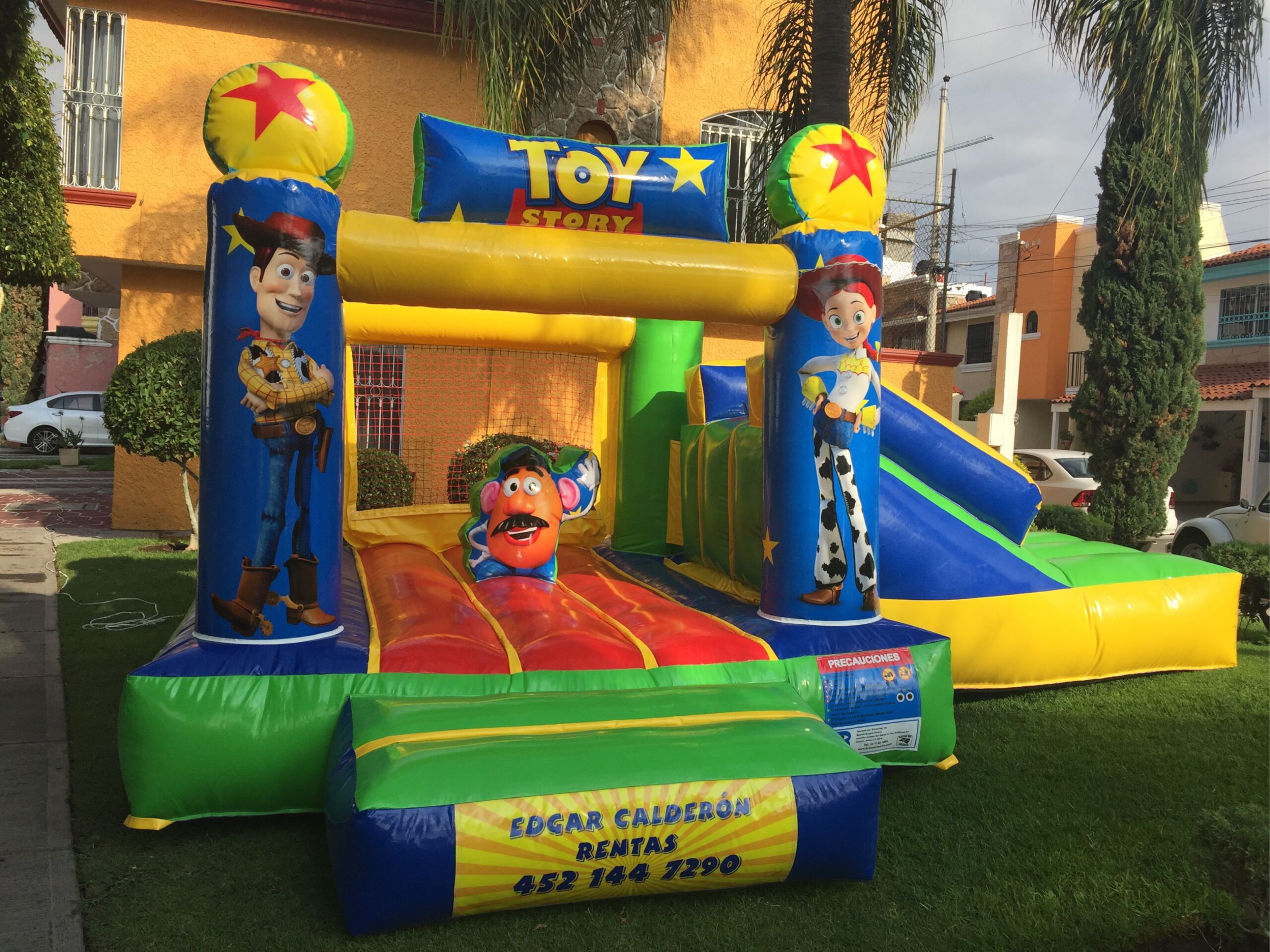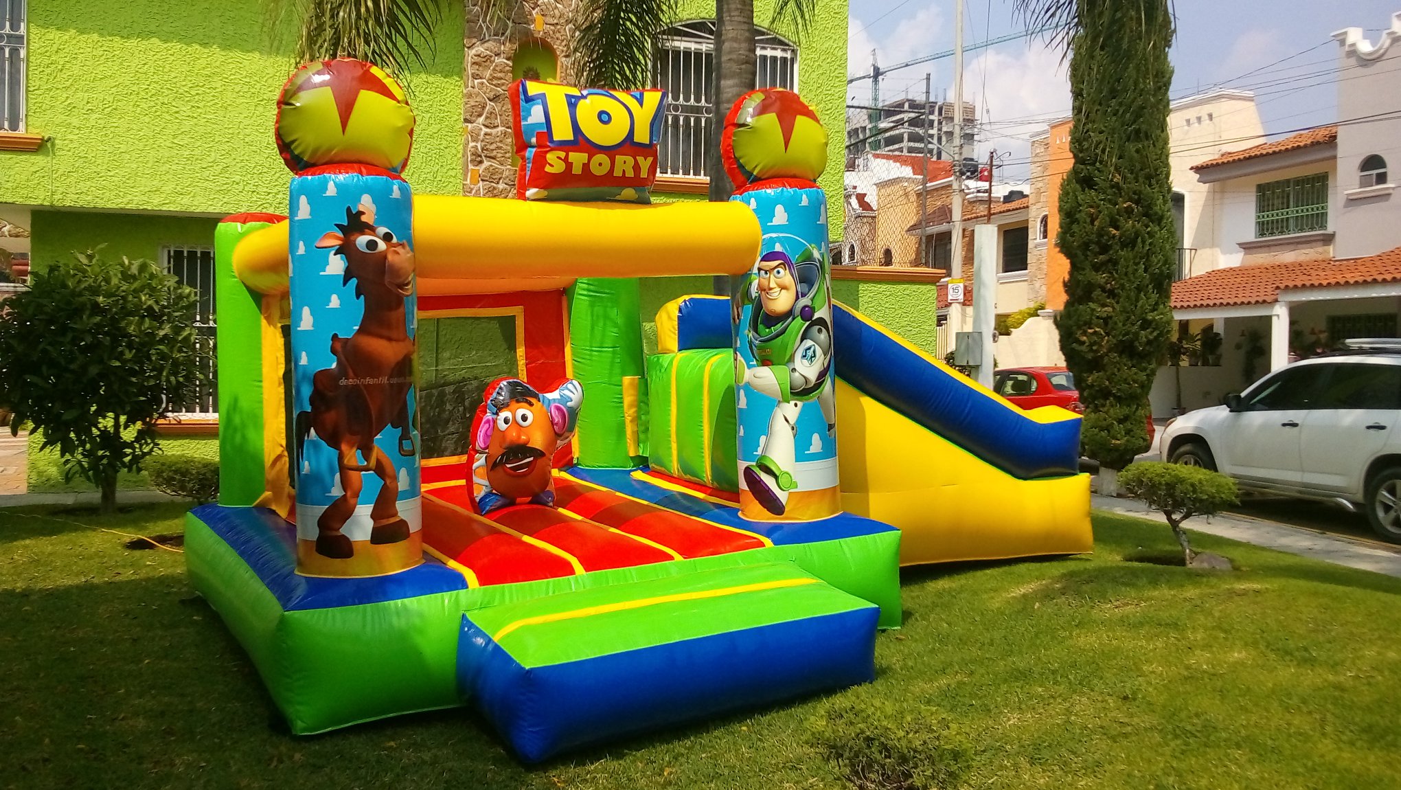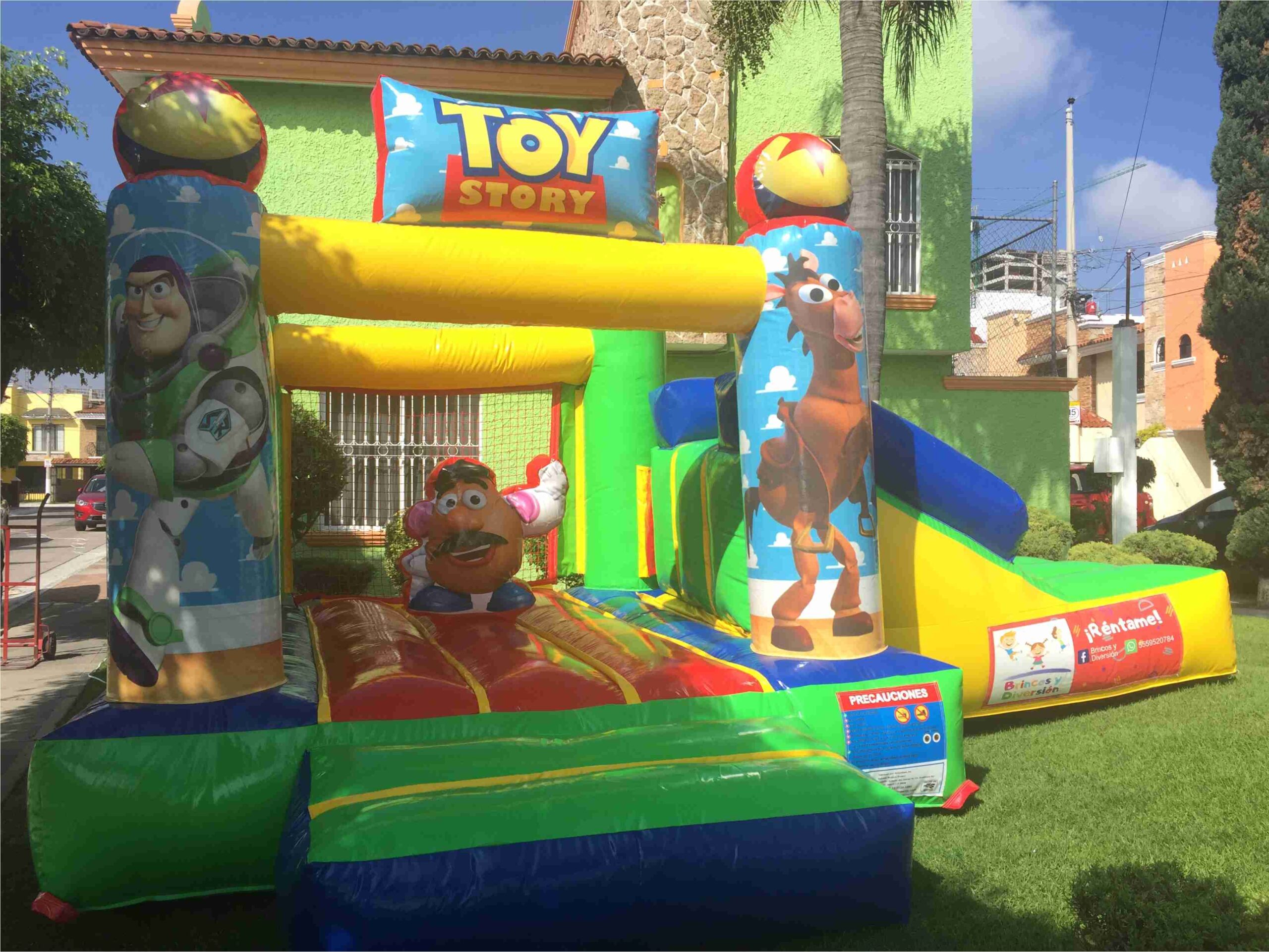 Inflable Toy Story 5x4m con rampa. Diseño temático, resistente y seguro. Ideal para renta en fiestas infantiles y eventos especiales.